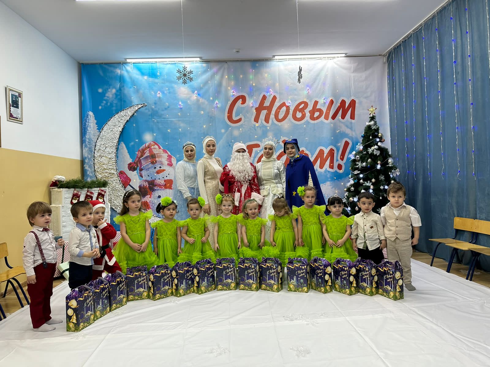 С появлением Деда Мороза и снегурочки начался настоящий праздник с песнями и танцами. Все дети с удовольствием проявляли свои таланты: танцевали, водили хороводы, рассказывали стихи, пели песни, играли. Никто не остался равнодушным. Море радости и эмоций вызвали подарки, врученные детям из рук самого Дедушки Мороза!